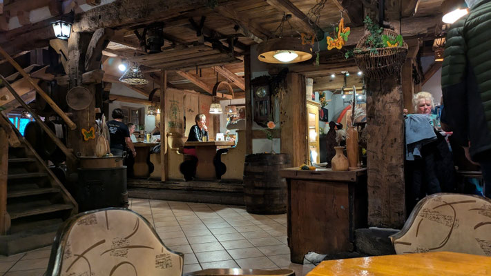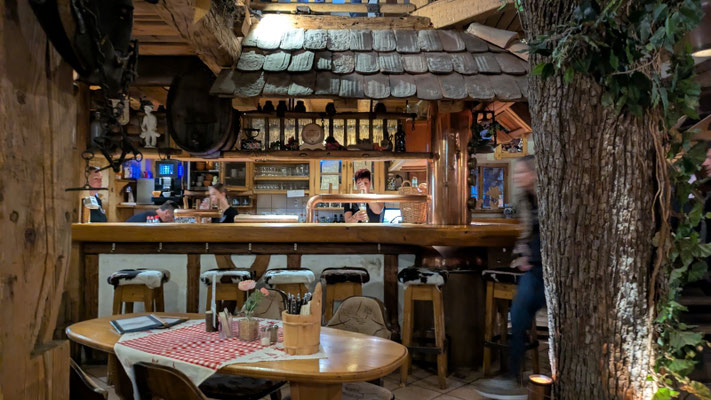 Der Abschluss der Tour fand in der Gaststätte "Krabbanescht" statt. Die Teilnehmer waren amüsiert von der Atmosphäre, die besonders durch den Baum in der Mitte der Gaststätte geprägt wurde, was besonders bei fachkundigen Teilnehmern eine angeregte Diskussion über die mögliche Echtheit des Exponats entfachte.