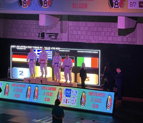 Mit einer tollen Leistung konnte Kim Wörner als Kadermitglied der Deutschen-Ju-Jutsu- Jugendnationalmannschaft sich in der neuen Klasse U21 +70 kg die Silbermedaille in der ostflämischen Stadt Beveren in Belgien erkämpfen und die Vize-Europameisterschaft in das Mühlbachtal holen. Nach WM-Silber (U18-Klasse) 2024 war auch in der neuen Klasse ein Podestplatz das Ziel obwohl wie gewohnt die KO-Regel galt, das heißt wer nur einen Kampf verliert hatte keine Chance mehr den Finalkampf um Gold oder Silber zu erreichen. Damit war die Marschroute klar gegen die Konkurrenz aus Slowenien, Österreich, Portugal, Italien, Frankreich, Griechenland, Spanien und Deutschland.